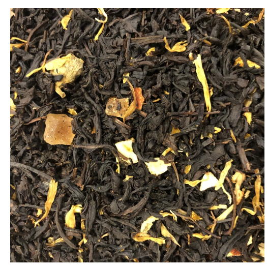 Black tea, calendula petals, orange bits, pineapple, natural and artificial flavor