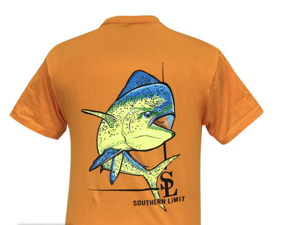 Southern Limit Mahi! Garment is a pre-shrunk, 60% combed ringspun cotton and 40% polyester jersey, 4.3-ounce, super soft and lightweight tee. Stay cool for the summer in Southern Limit.